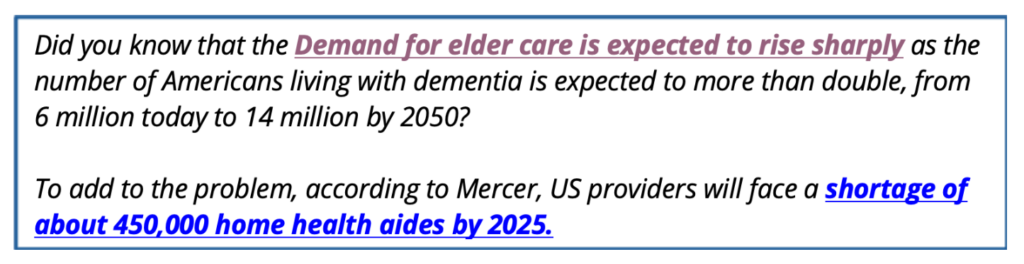 Incorporating local “on the ground” aging-in-place non-profits and other targeted resources as part of your company’s support strategy is a commitment to the holistic well-being of your employees.